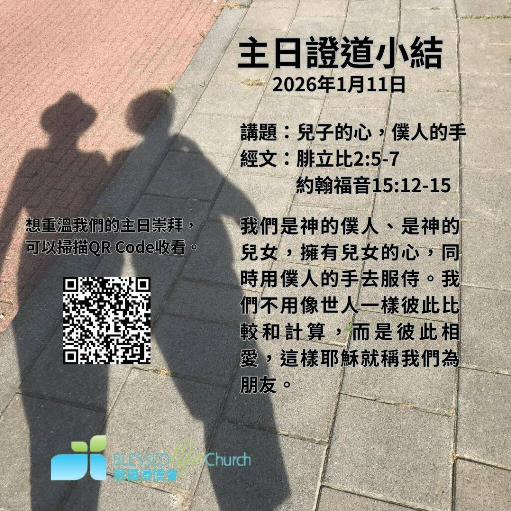 2. 招募崇拜招待:你的一個微笑、一句問候,可能就是別人第一次感受到教會溫度的時刻。我們誠邀你加入崇拜招待員的行列,用簡單的服事,讓每一位走進教會的人都能賓至如歸、溫暖自在。不需要特別口才,只需要一顆願意接待、願意委身同行的心。讓我們一起,在別人踏進教會的一刻就活出基督的愛。參加者需要參與招待訓練,報名詳情請向張牧師查詢。