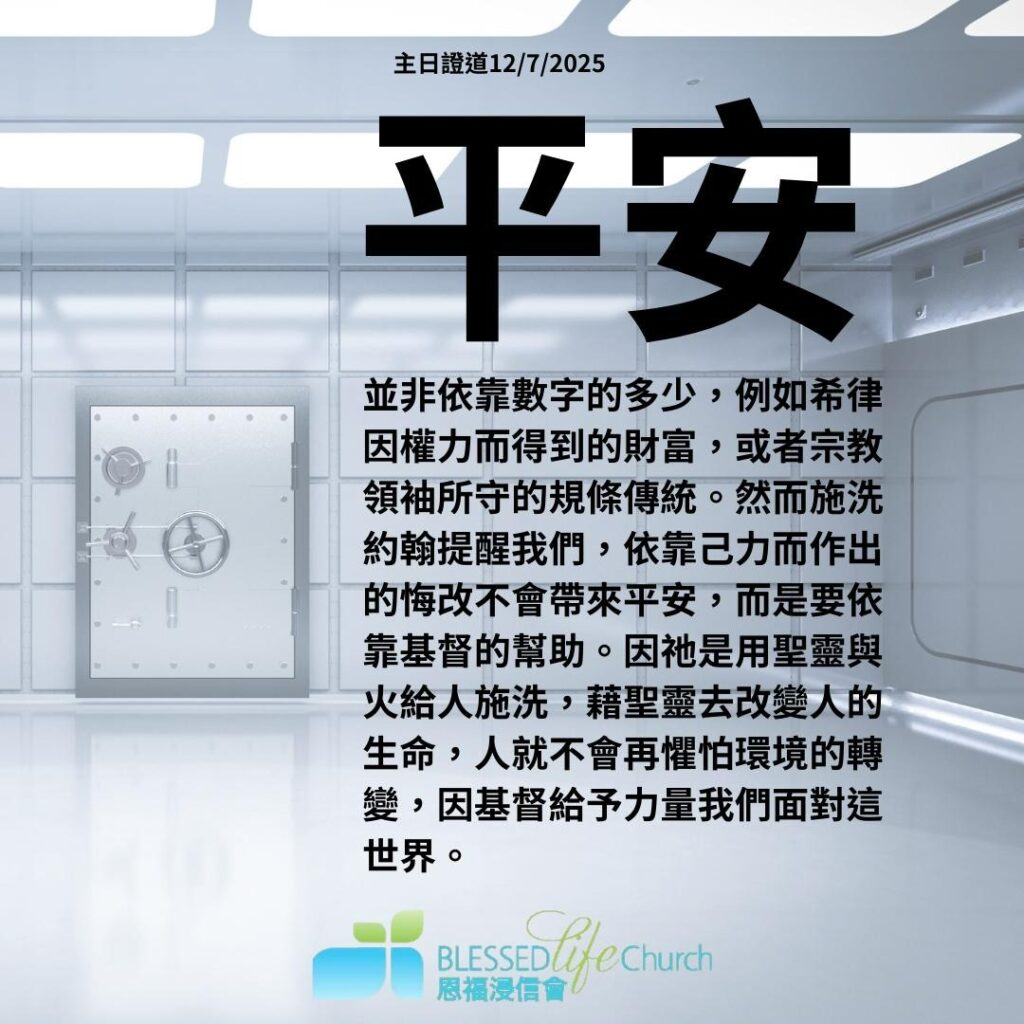 1. 2025下半年浸禮及轉會禮:浸禮於12月6日(週六),上午10:30至中午12:00在表爾威基督教會(Bellevue Church of Christ-10419 SE 11th Street, Bellevue, WA)舉行。轉會定於12月7日(主日)在本址舉行,凡有志受浸或慕道及有志轉會者,請與牧師或長執報名及查詢。